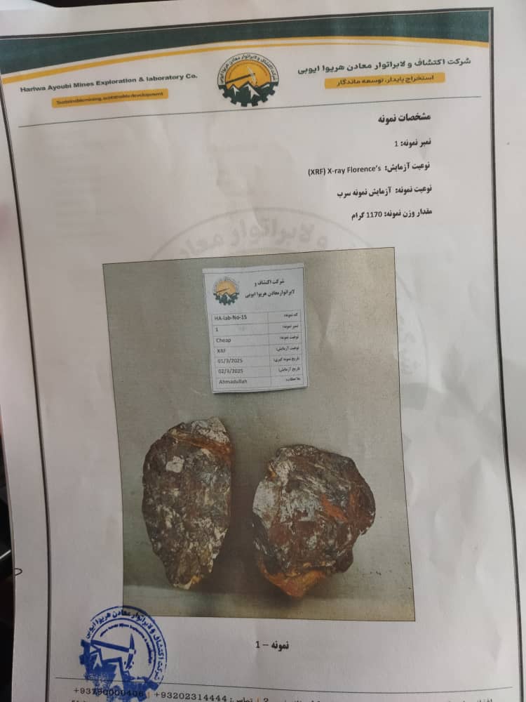 This report represents a bulk XRF scan of a representative lead ore lump sample from Afghanistan.