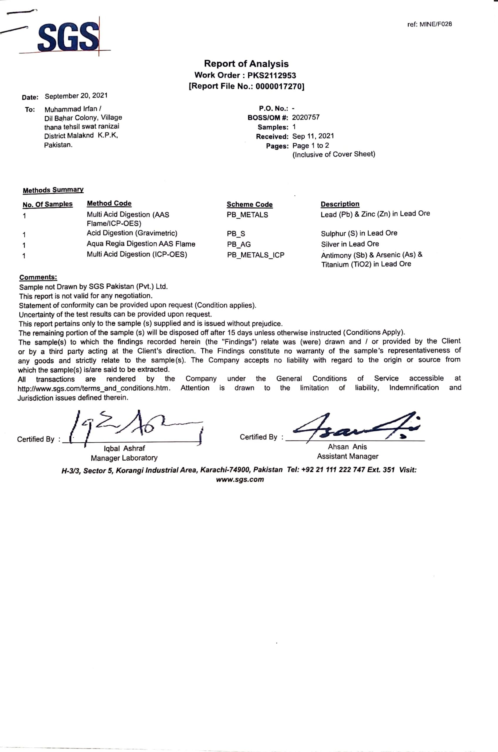 Laboratory: SGS Pakistan – Chemical & Environmental Lab, Karachi